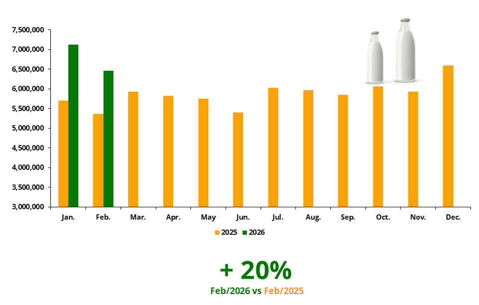 🐄 In the first 2 months of 2026, milk deliveries increased by 23% compared to the similar period in 2025.