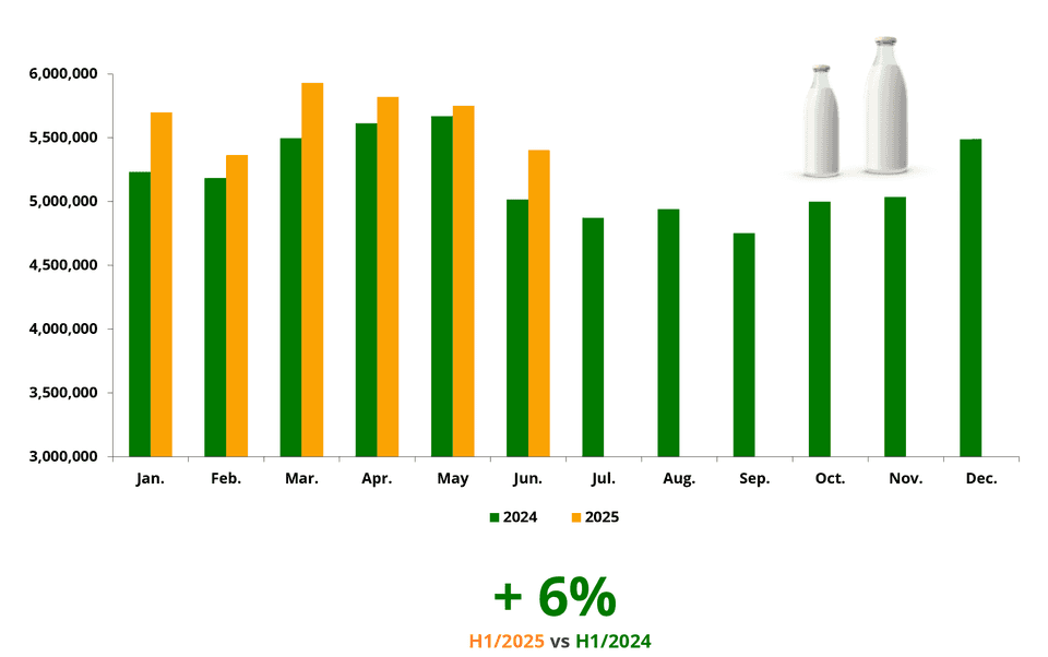 6% INCREASE IN THE MILK DELIVERED IN THE FIRST HALF OF 2025