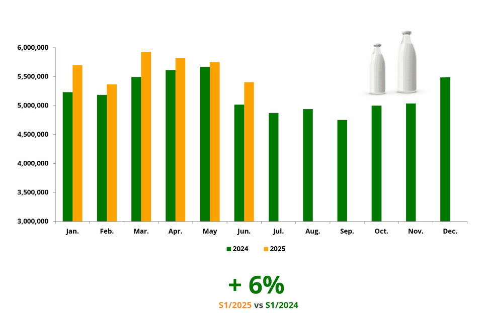 🐄 DN AGRAR a livrat 34 de milioane de litri de lapte în prima jumătate a anului 2025, marcând o creștere de 6% față de prima jumătate a anului 2024.