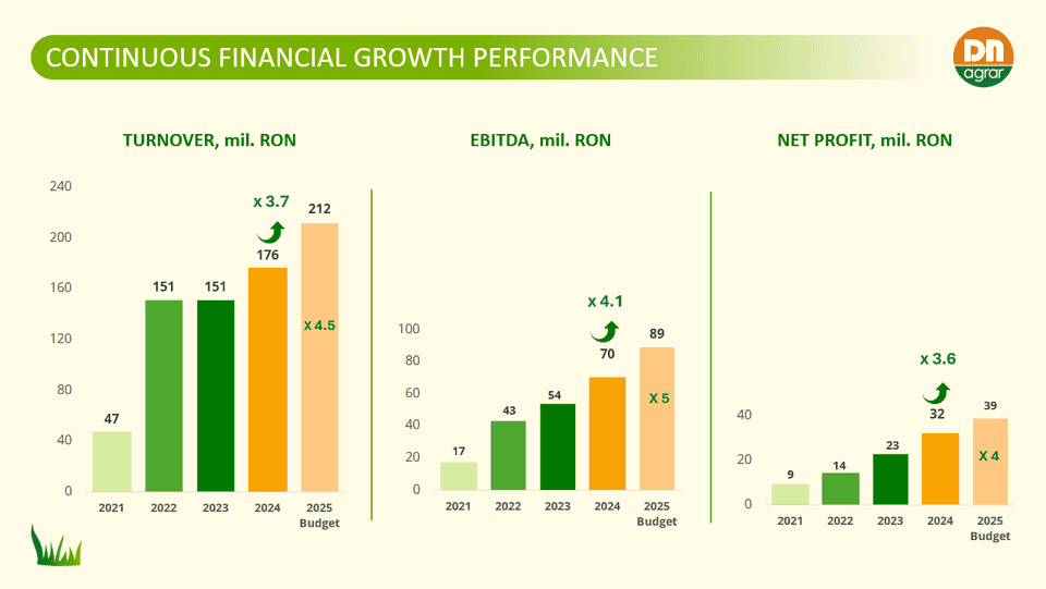 DN AGRAR a publicat pe website-ul său prezentarea dedicată pieței de capital, care detaliază Strategia pe termen mediu a companiei pentru perioada 2025-2030. Documentul strategic oferă o perspectivă strategică asupra Strategiei companiei pentru perioada 2025-2030, cât și a evoluției sale în piața de capital de la listare.