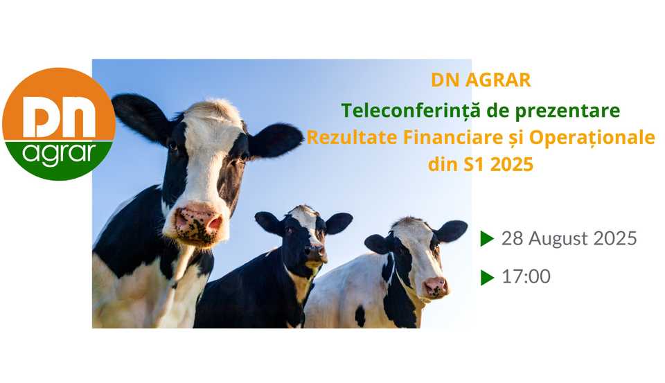 DN AGRAR a anunțat evenimentul "Ziua Investitorului" care va avea loc la data de 19 Septembrie 2025, în cadrul fermei Straja.