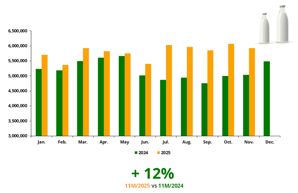 12% INCREASE IN THE QUANTITY OF MILK DELIVERED IN THE FIRST 11 MONTHS OF 2025