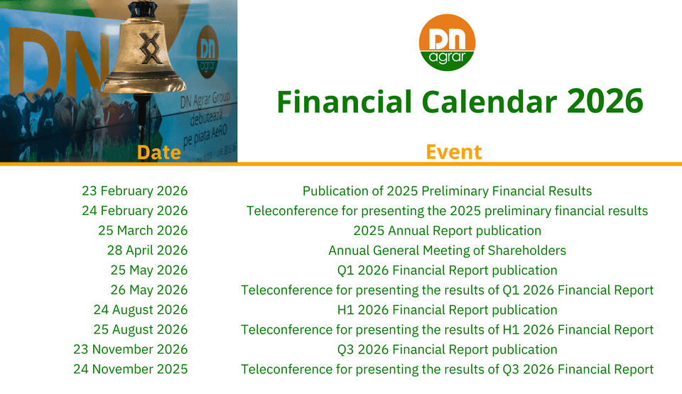 DN AGRAR is the largest dairy milk producer in Europe and one of the leading integrated agrifood company in Romania, listed on the Bucharest Stock Exchange since 2022.